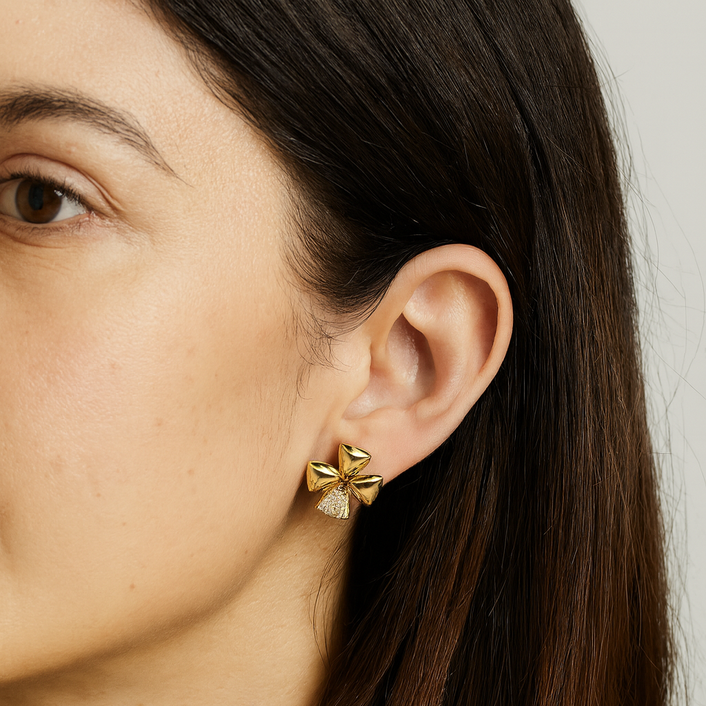 Lightweight and thoughtfully crafted, these earrings are easy to wear from day to night. Their polished gold surfaces, soft curves, and diamond detailing create a refined style that feels both timeless and contemporary. These 14K Yellow Gold Flower Pave Earrings are a beautiful choice for adding brightness and elegance to any collection.