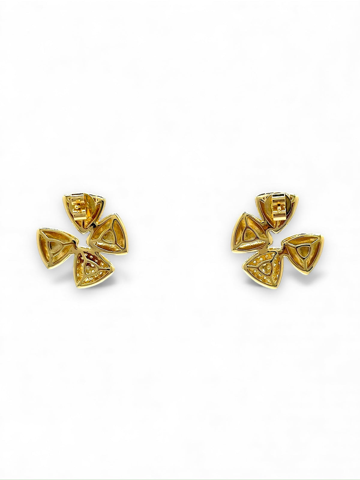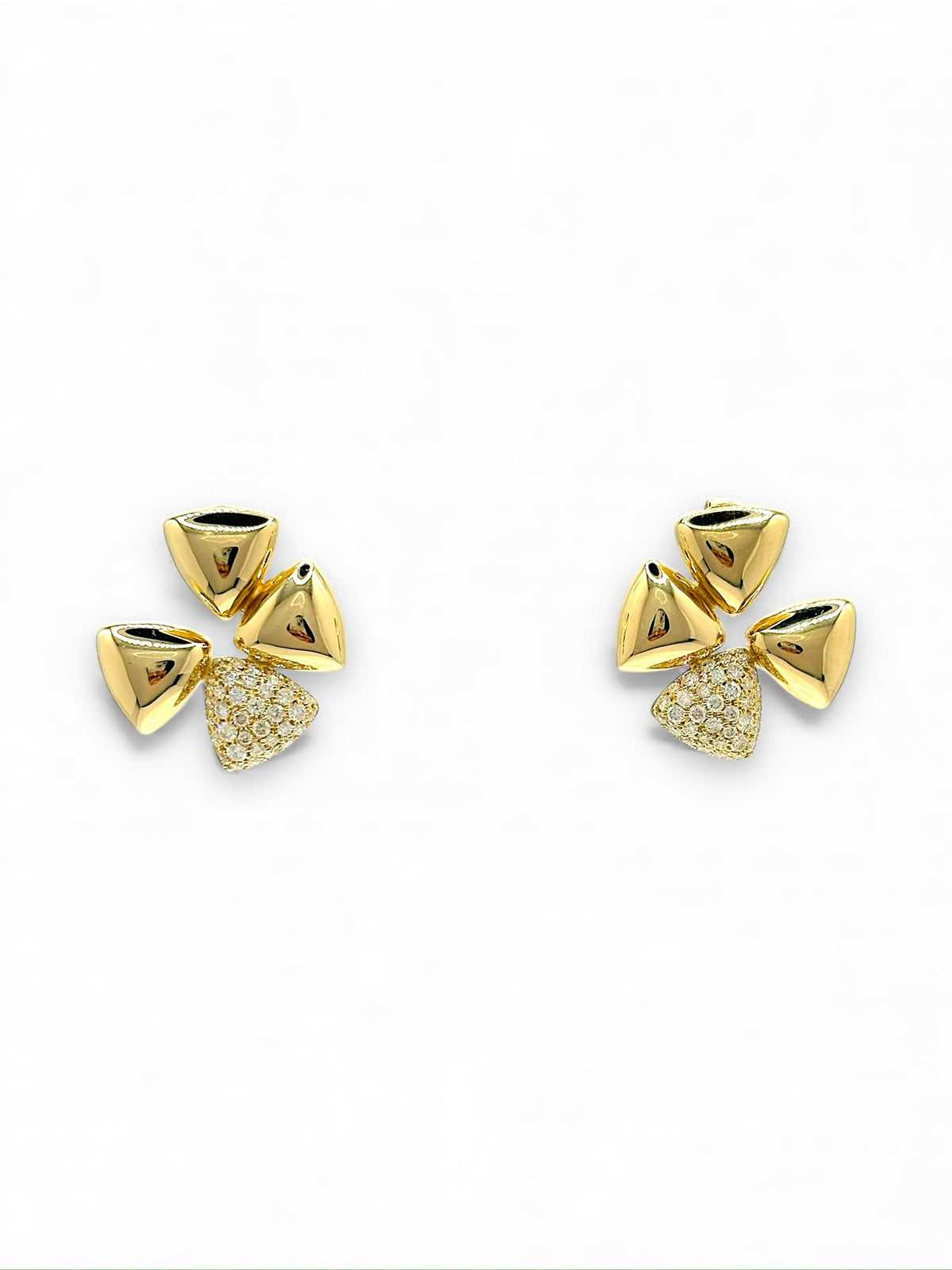 14K Yellow Gold Diamond Pavé Flower Earrings – 1.16 CTW
