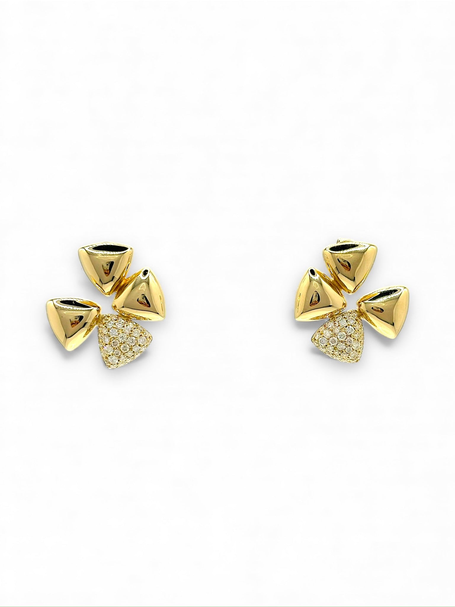 • A bright and modern bloom showcased in these 14K Yellow Gold Flower Pave Earrings