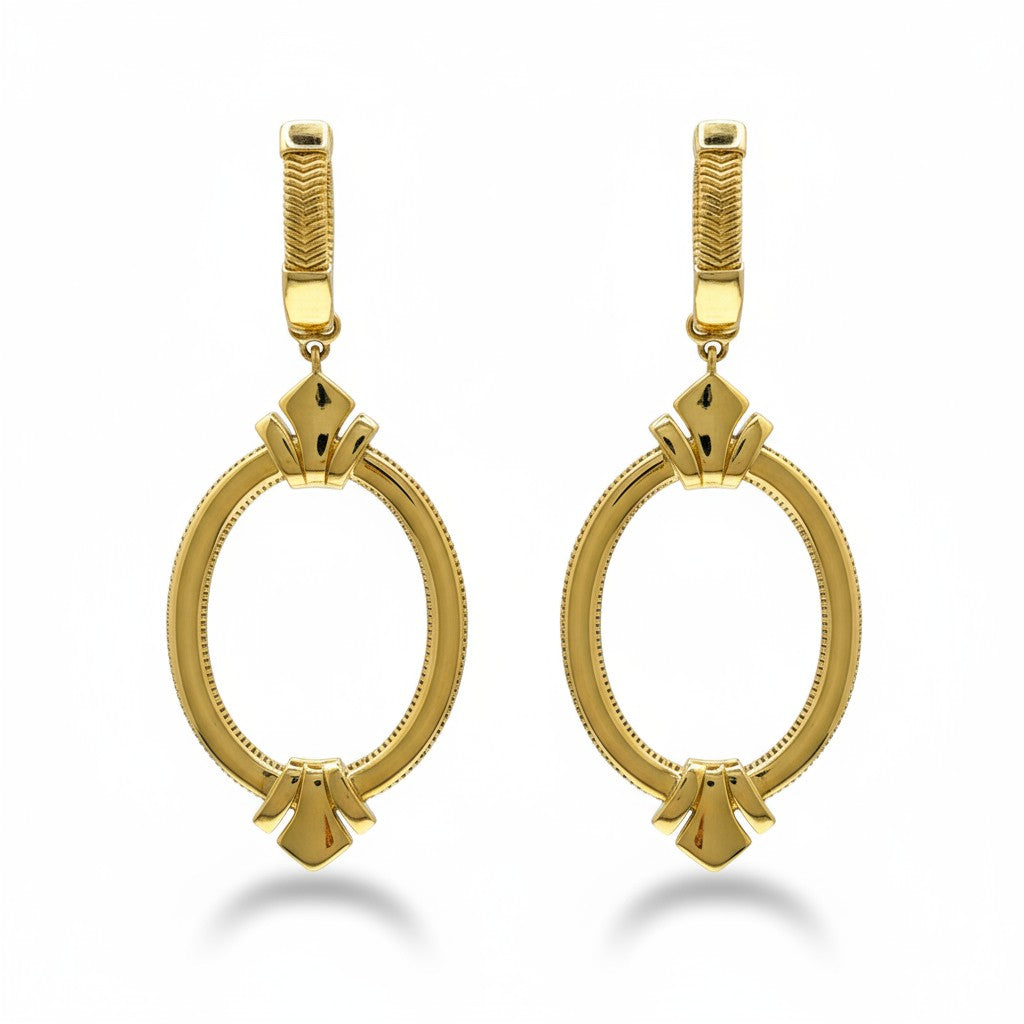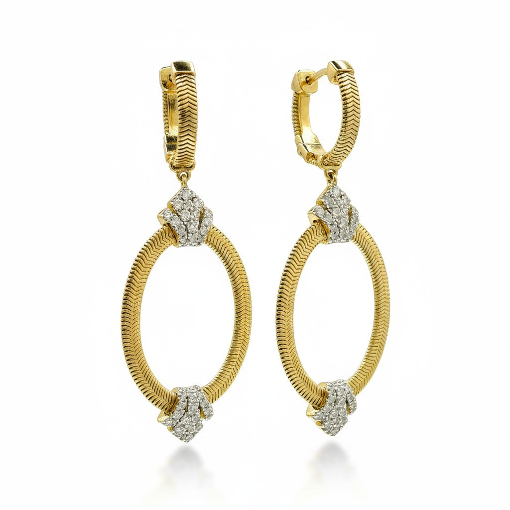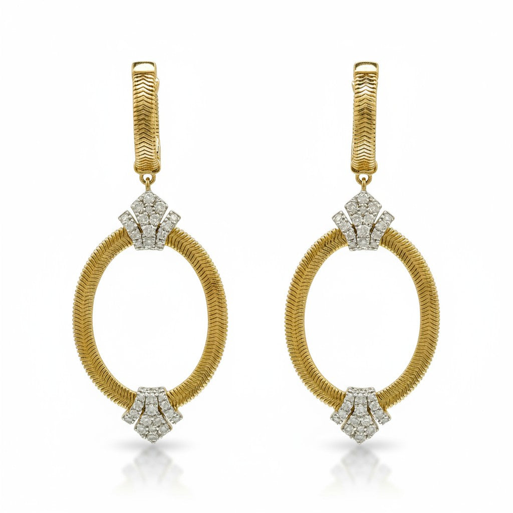 14K Yellow Gold Textured Open Oval Diamond Drop Earrings – 1.10 CTW