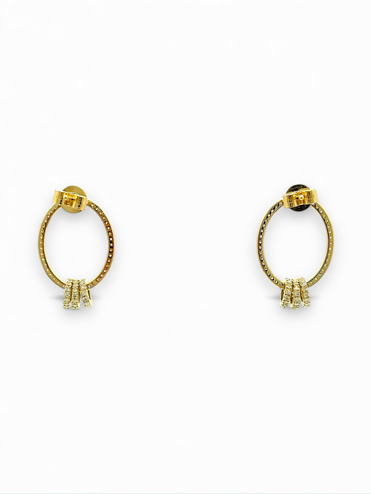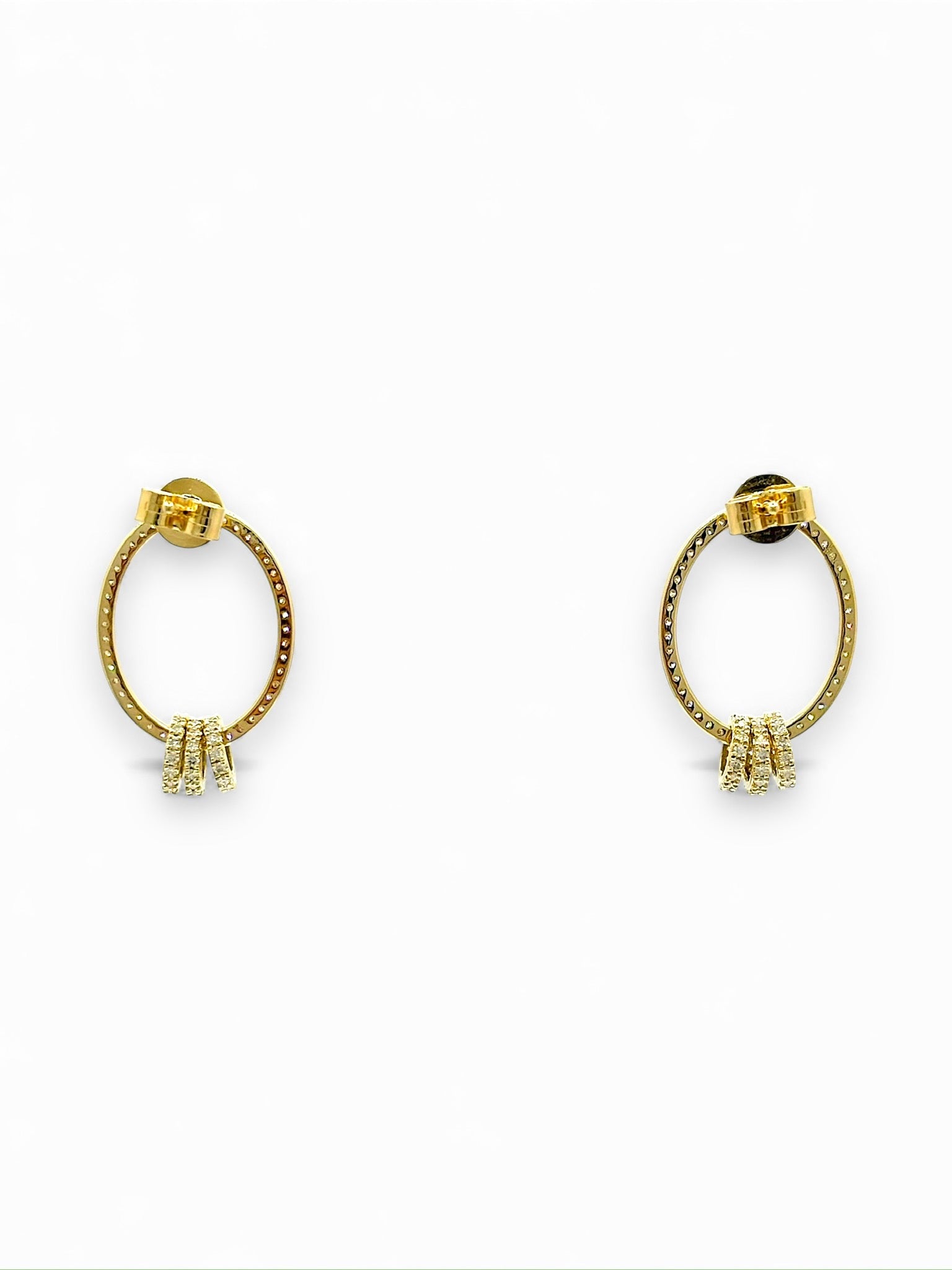14K Yellow Gold Oval Diamond Earrings with Triple Rings