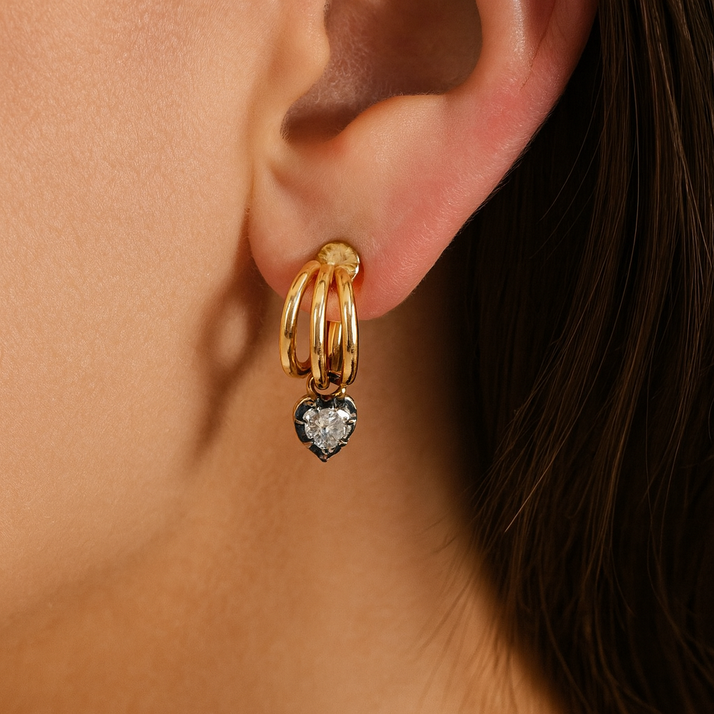 Designed to sit comfortably and securely, the huggie style makes these earrings easy to wear from morning through evening. The heart drop adds a personal, expressive detail that works beautifully for both special occasions and everyday style. Crafted with care, this pair brings together charm, shine, and meaningful design.