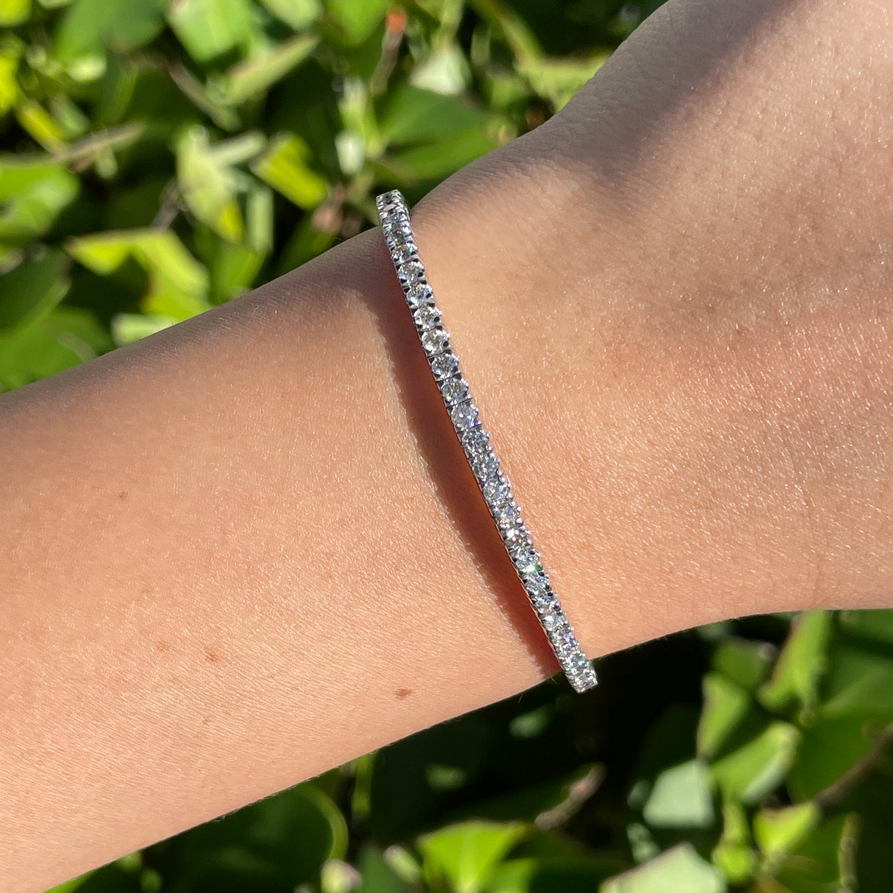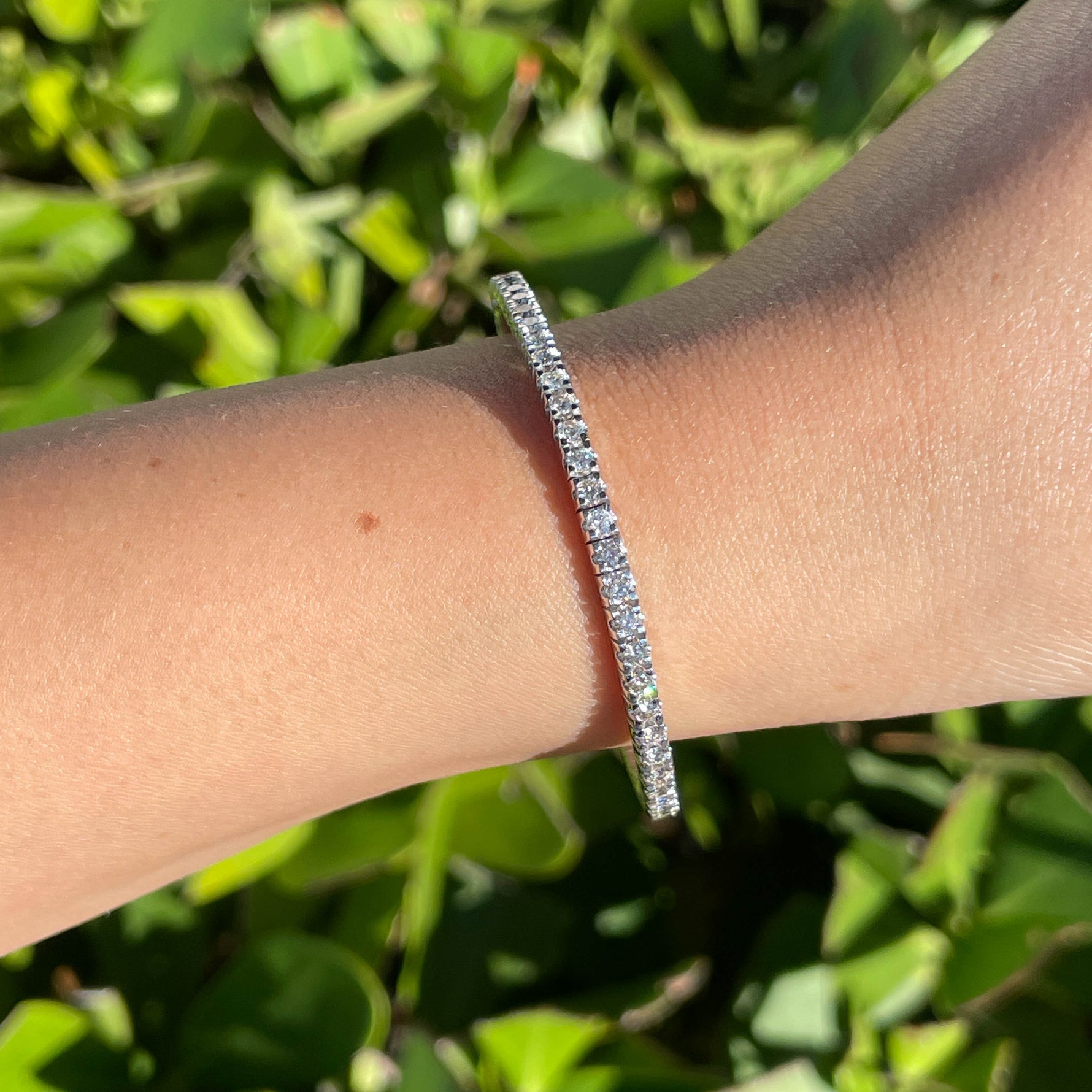 Jay Feder 18k White Gold Round Diamond Stretchy Tennis Bracelet