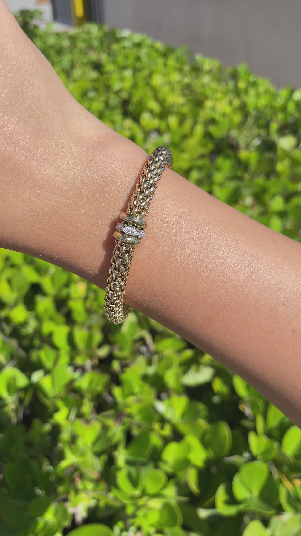 Jay Feder 18k Two-tone Gold Diamond Braided station bracelet with round diamonds; estimated total weight is 0.19ctw.