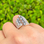 The width of the ring is 24.04mm on the top and 5.84mm on the bottom. Sits 2.95mm from the top of the finger. Ring size is 6.5 (please contact for sizing PRIOR purchase). Total weight of the ring is 13.0 grams.
