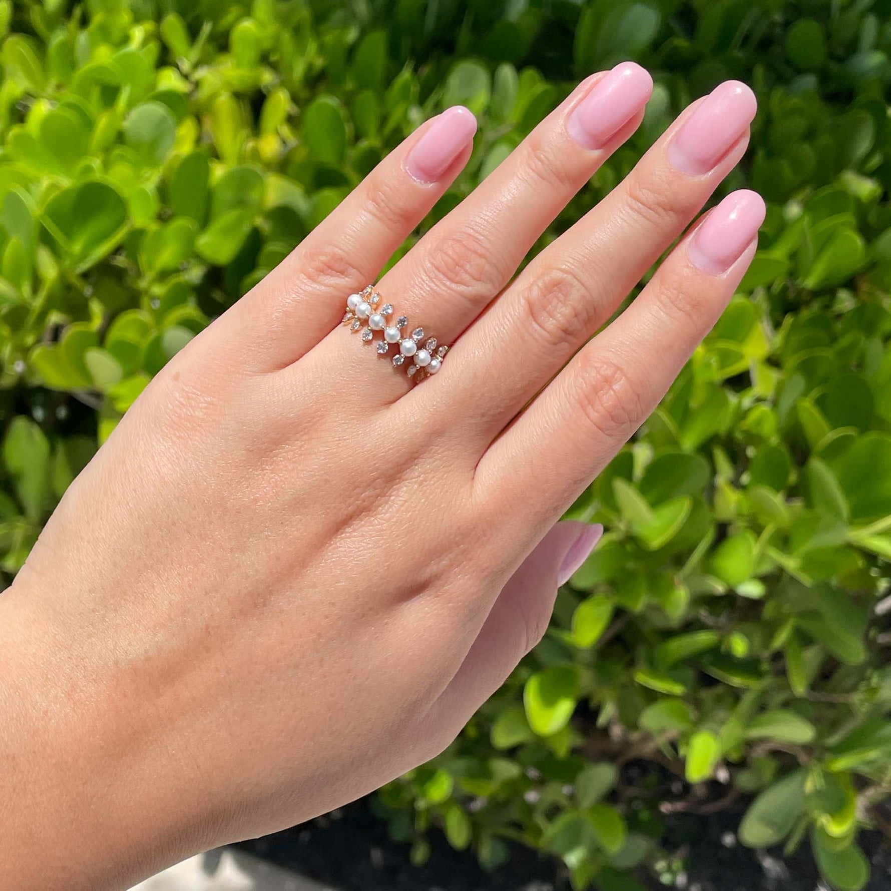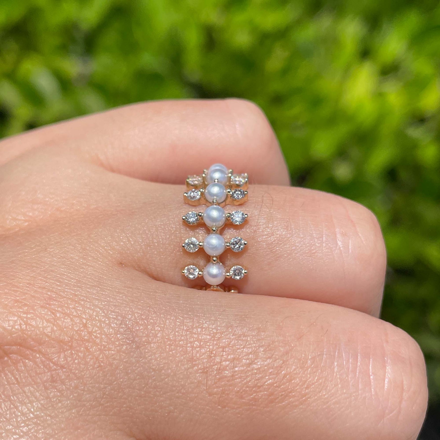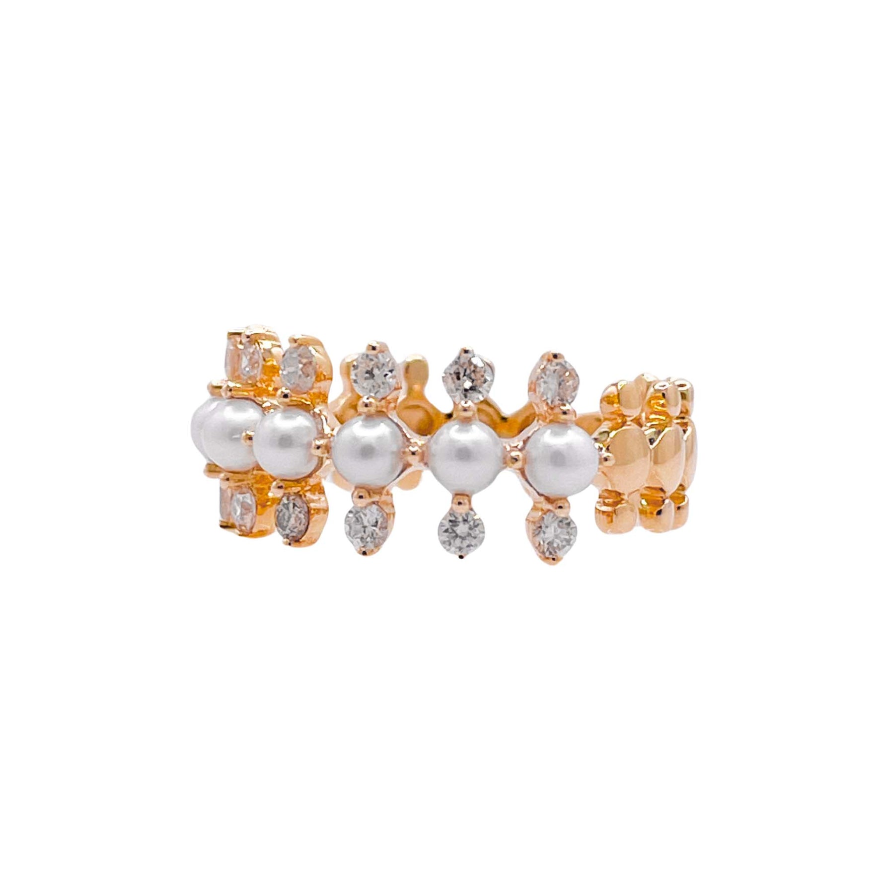 Jay Feder 14k Yellow Gold Diamond Pearl and Diamond Spike Band Ring
