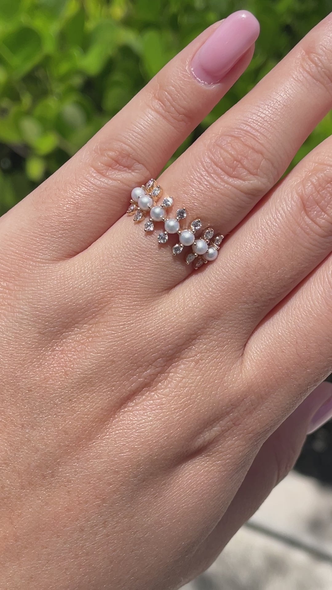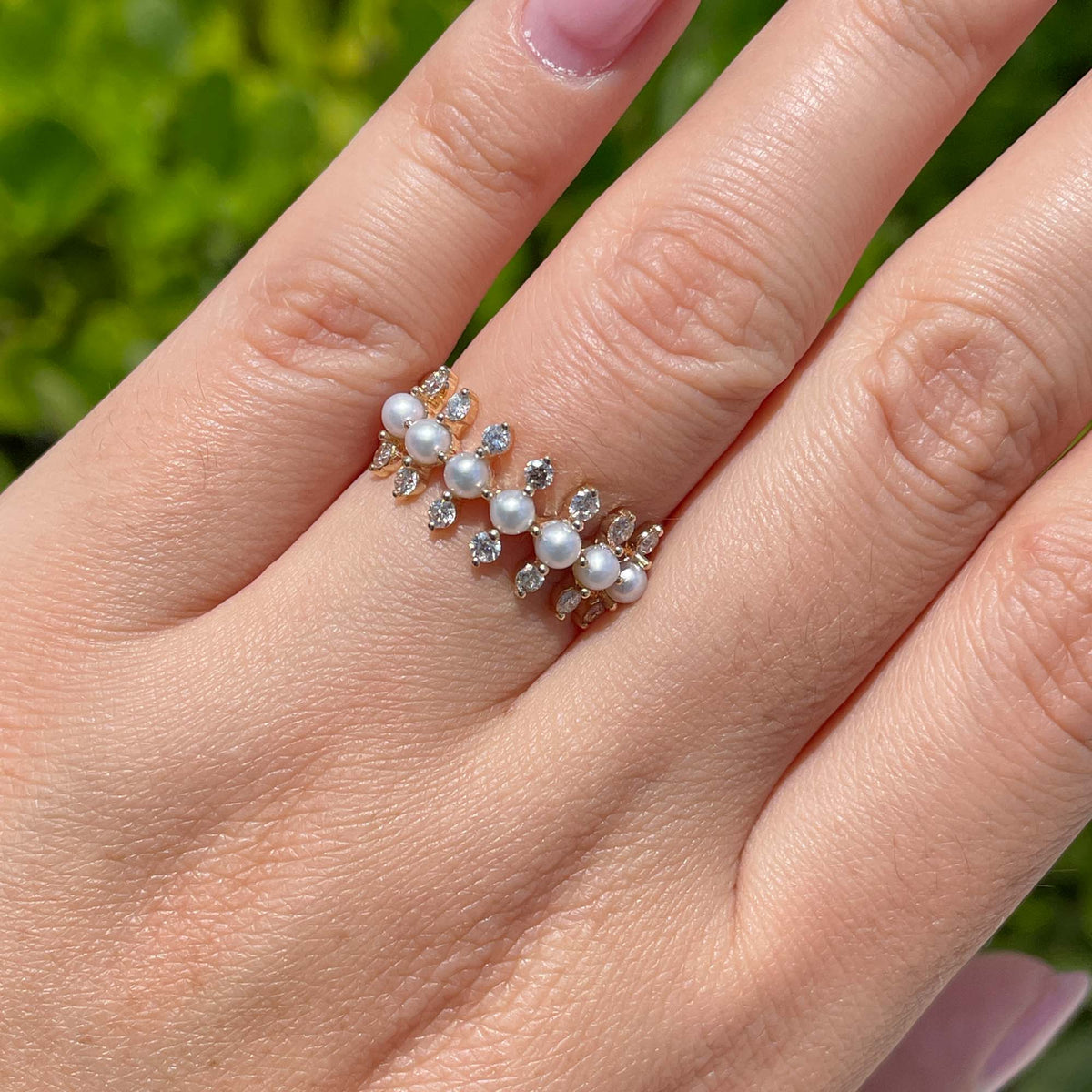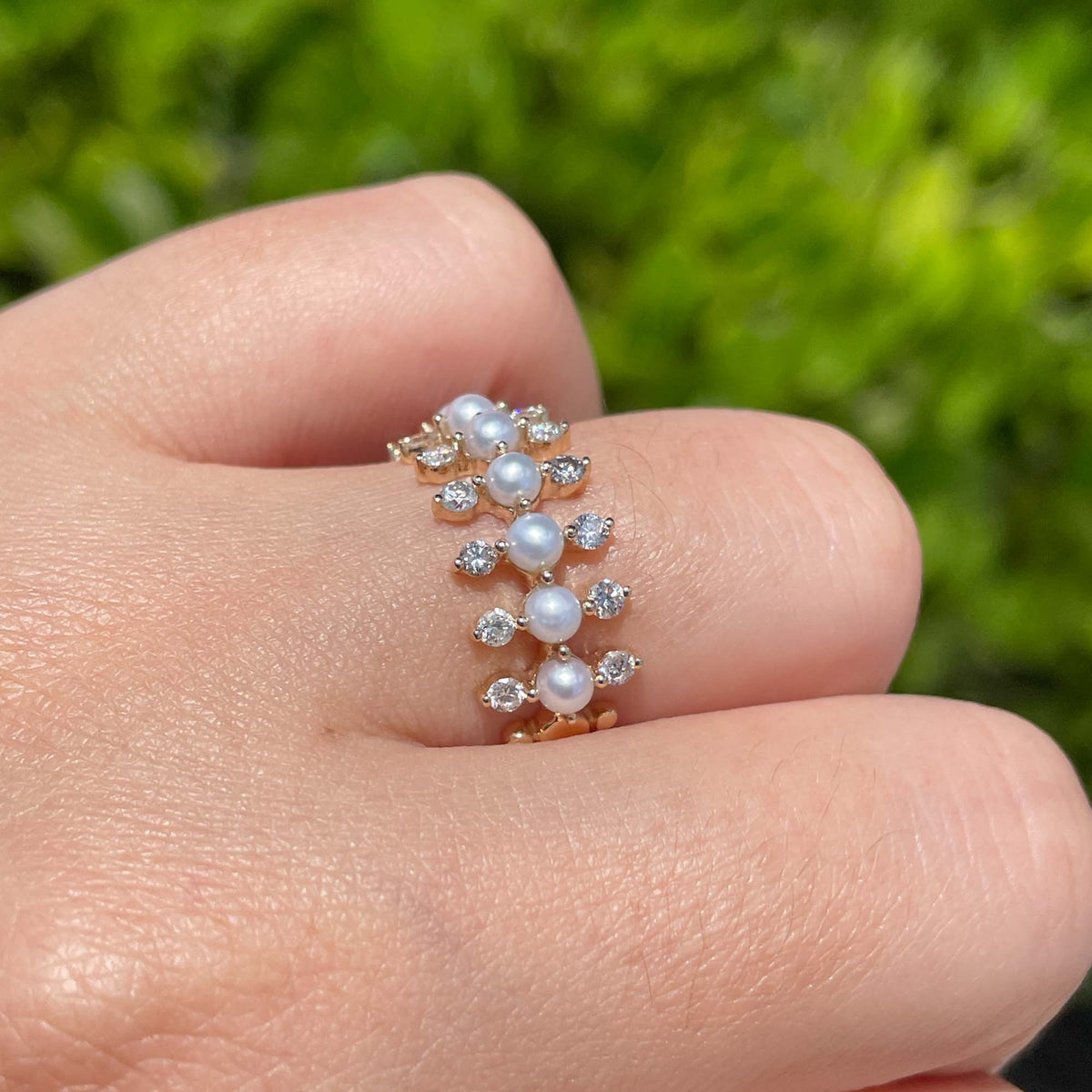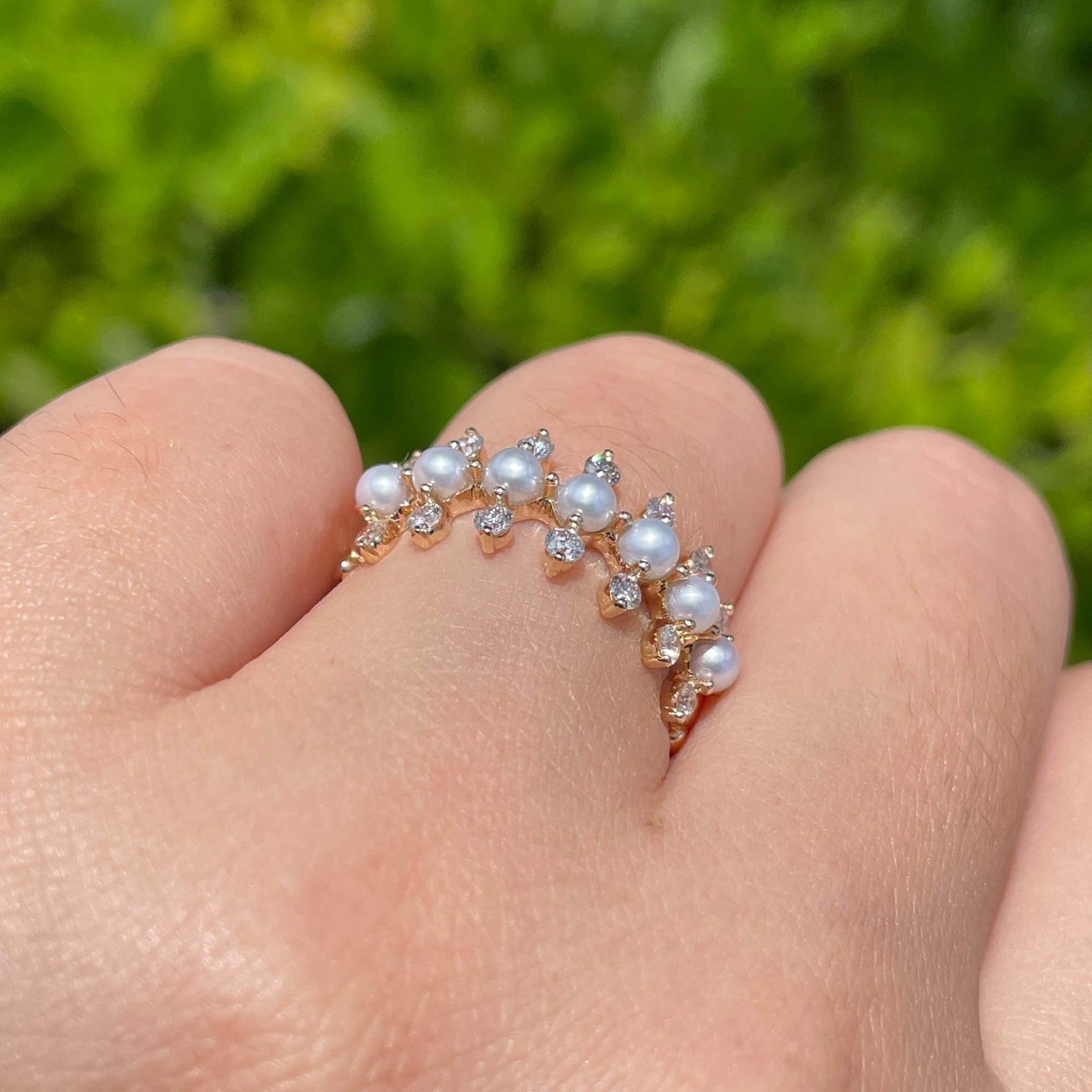 Jay Feder 14k Yellow Gold Diamond Pearl and Diamond Spike Band Ring
