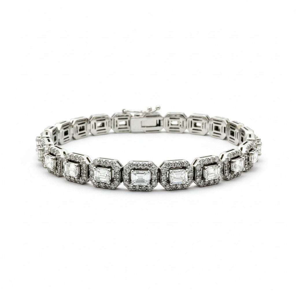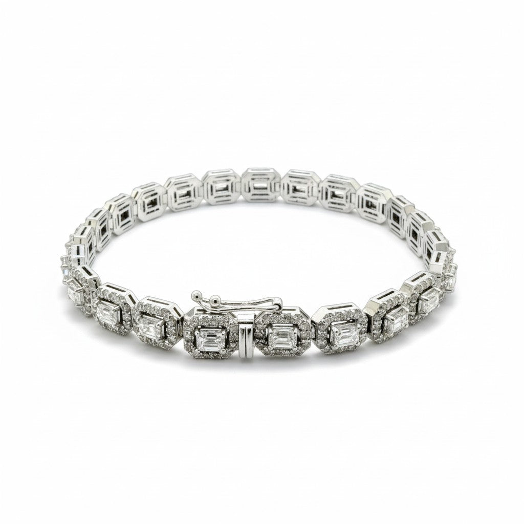 18K White Gold Cluster Tennis Bracelet – 7.82 CTW