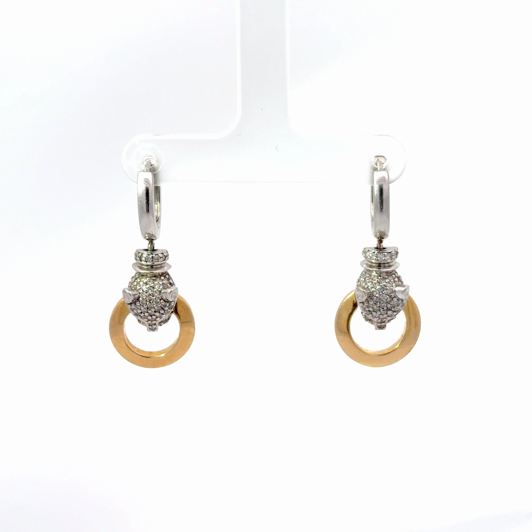 14K Two Tone Gold Diamond Leopard Circle Hoop Earrings