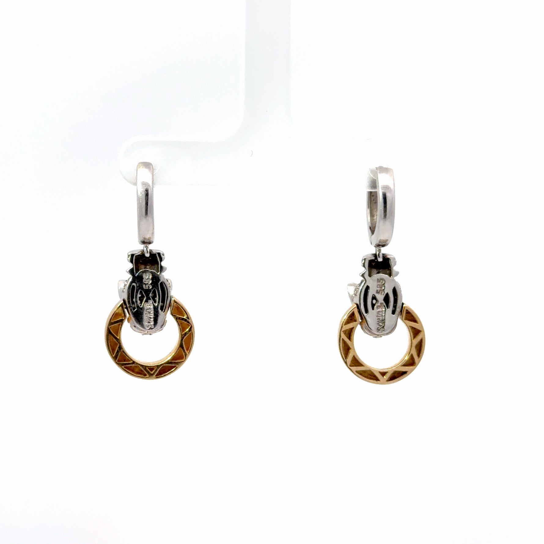 Unit price perThese Diamond Leopard Circle Hoop Earrings bring together whimsy and fine craftsmanship in a distinctive two tone design. Crafted in 14K yellow and white gold, each earring features a diamond-accented leopard motif paired with a polished gold circle drop for added movement and contrast.