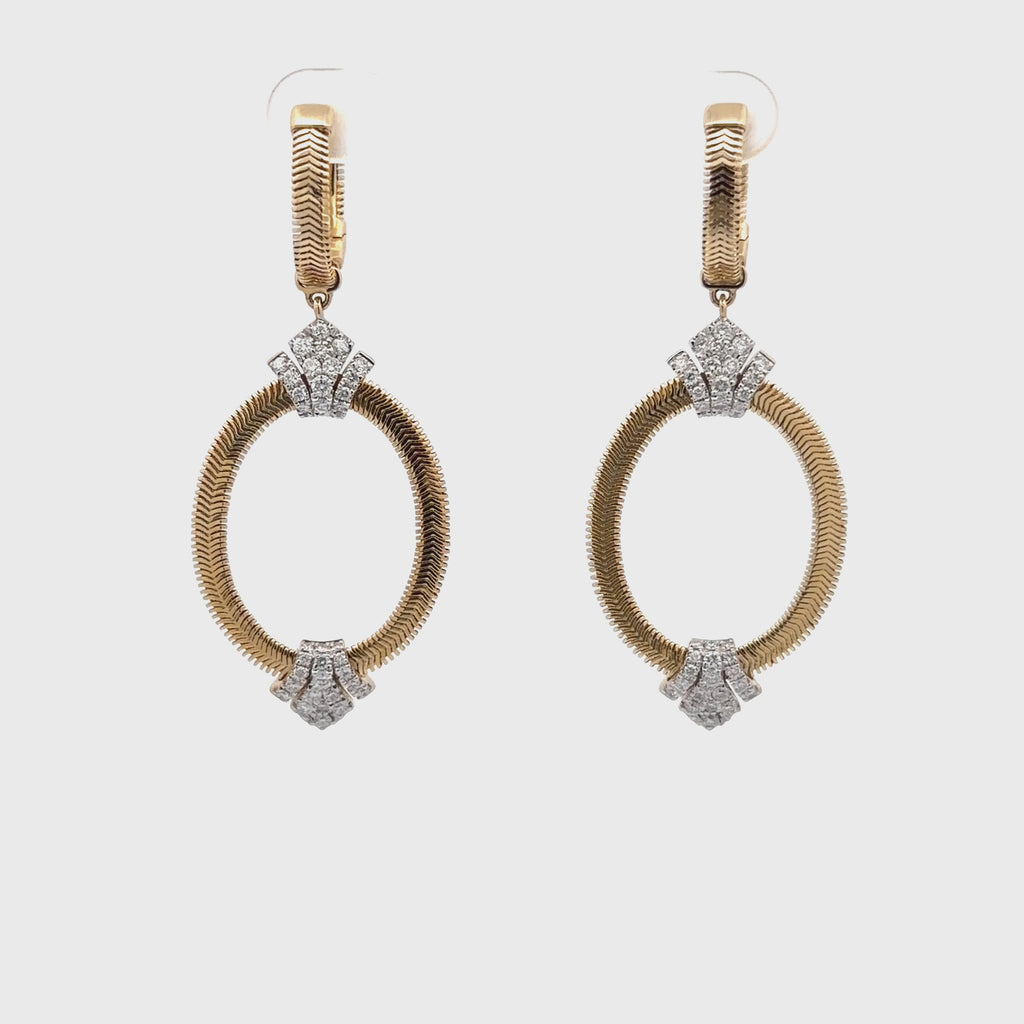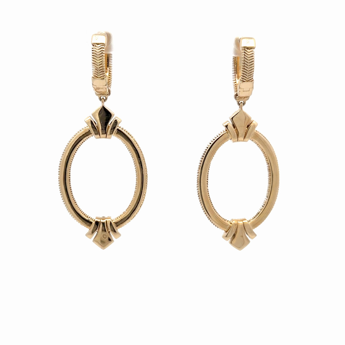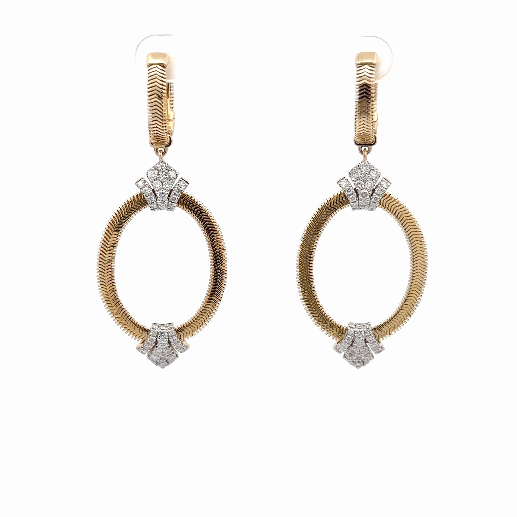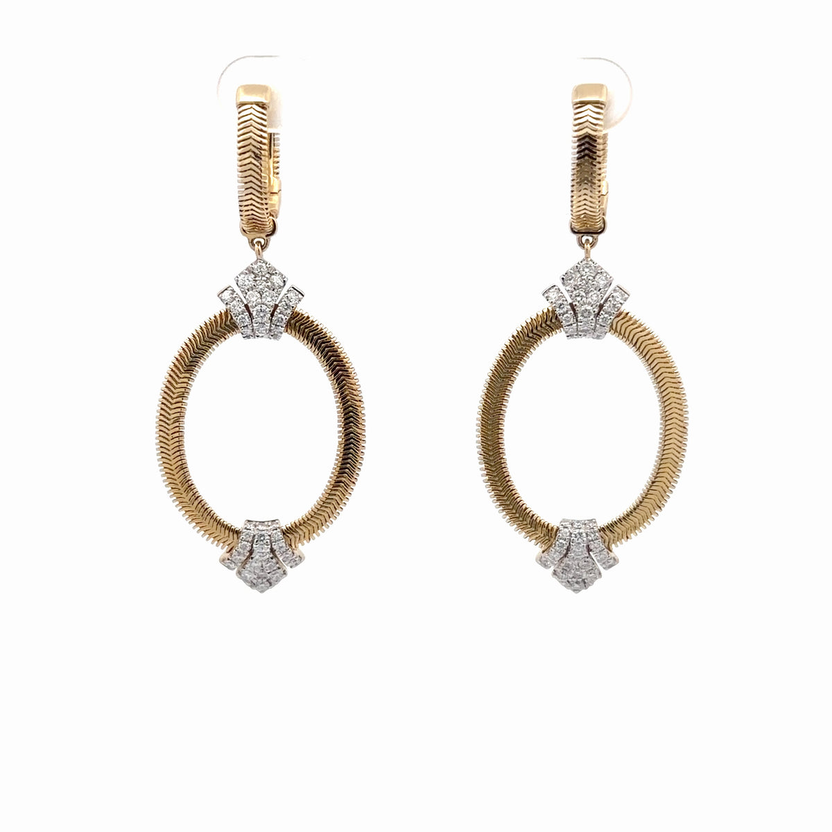 14K Yellow Gold Textured Open Oval Diamond Drop Earrings – 1.10 CTW