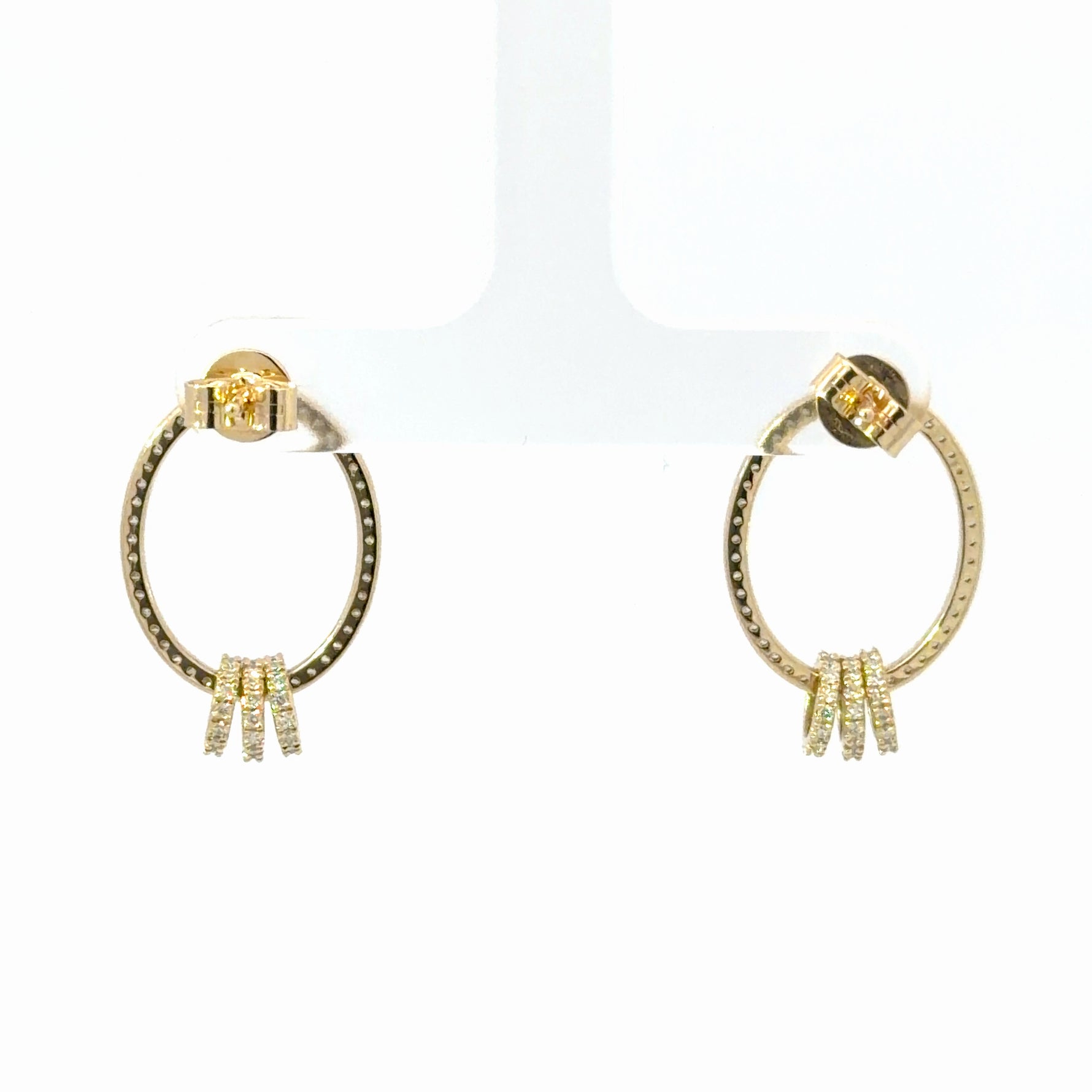 14K Yellow Gold Oval Diamond Earrings with Triple Rings