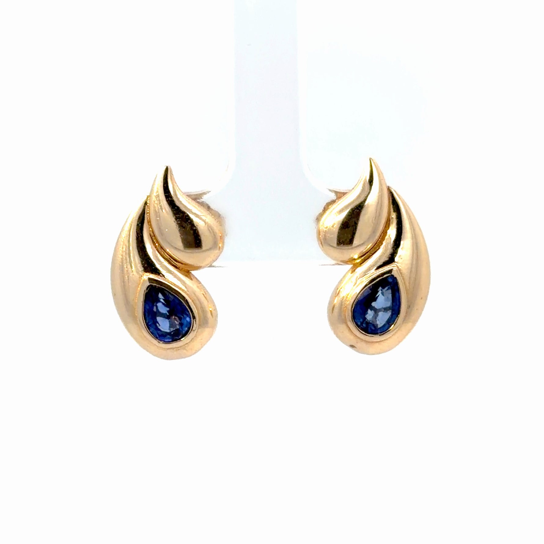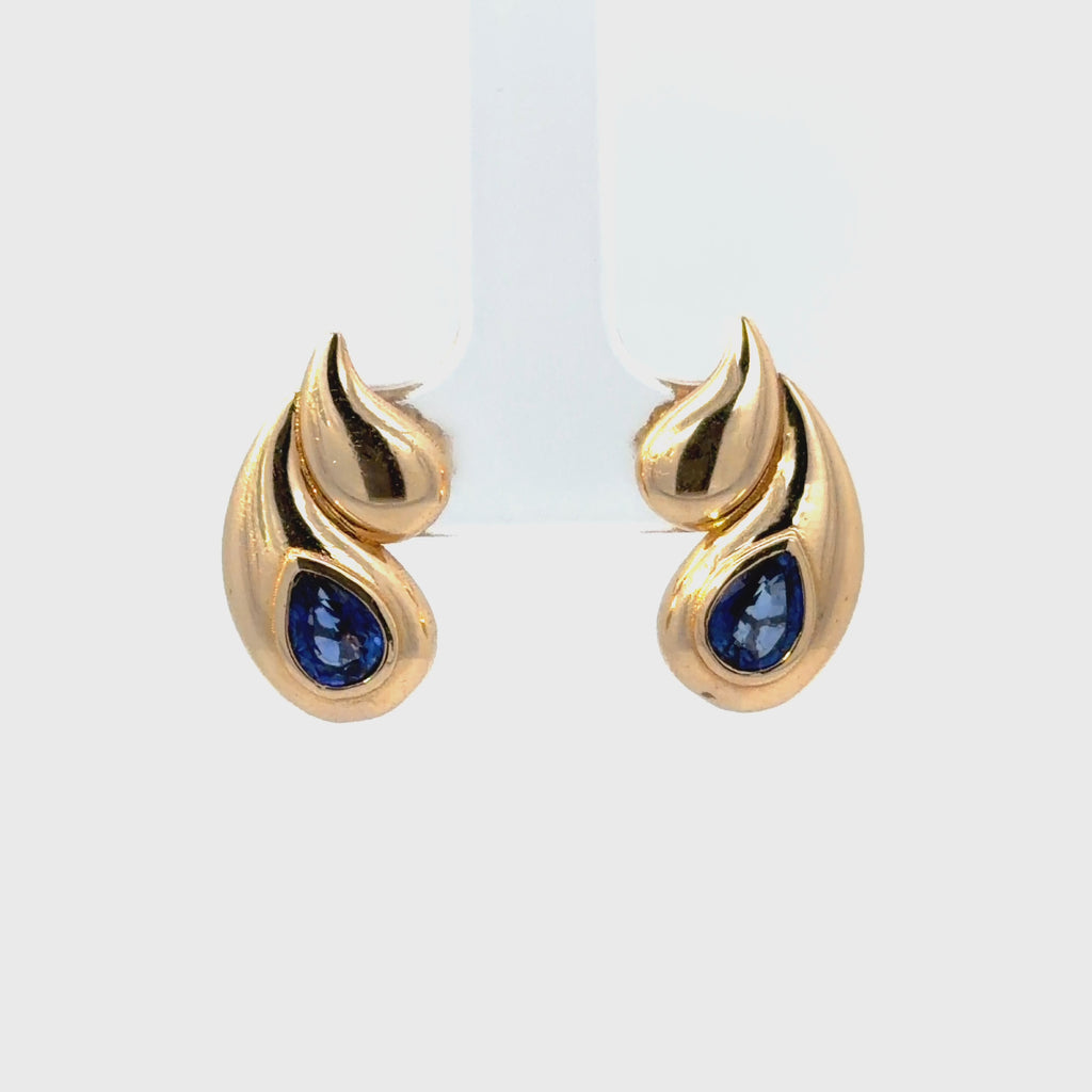 14K Yellow Gold Teardrop Sapphire Earrings