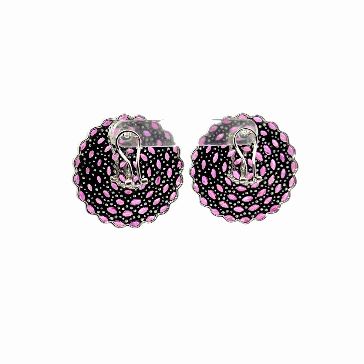 Measuring 34mm in diameter, the earrings offer a bold yet refined presence, ideal for evening wear or special occasions. Their sculptural form and exceptional gemstone quality make them a standout addition to any fine jewelry collection.