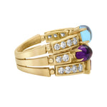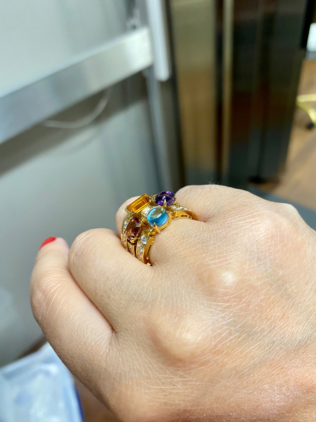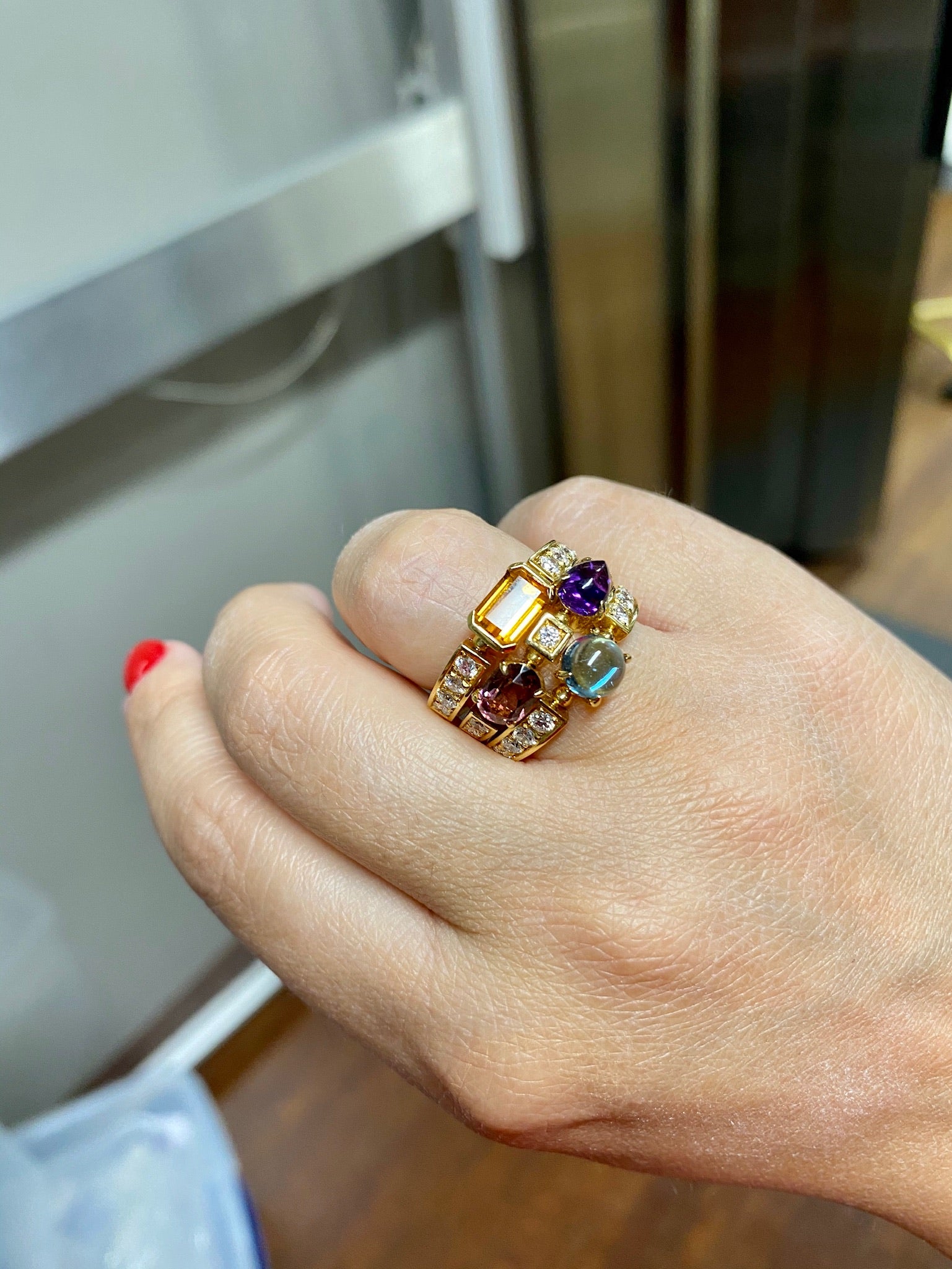 Jay Feder 18K Yellow gold diamond multi color Bulgari cocktail ring