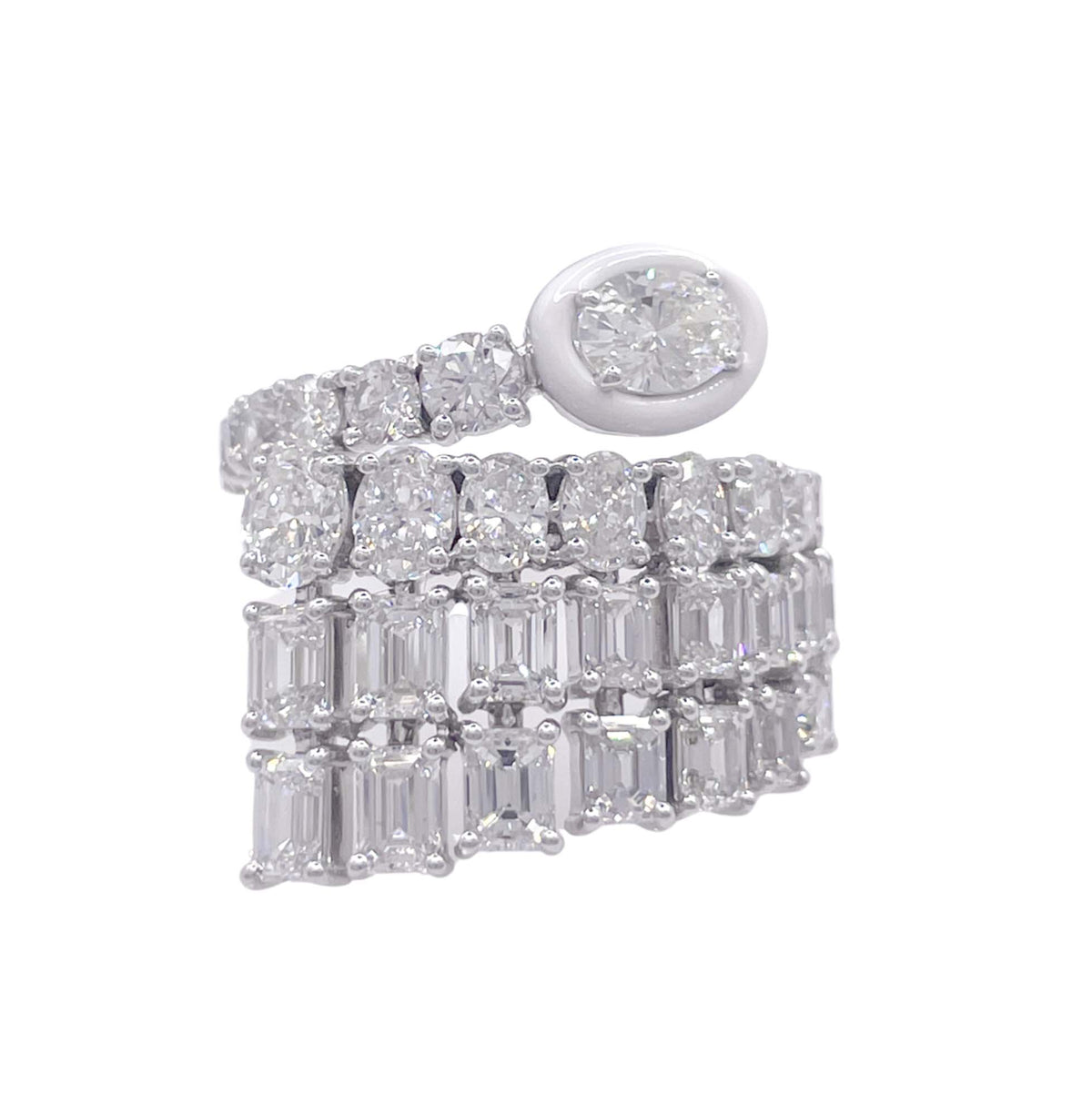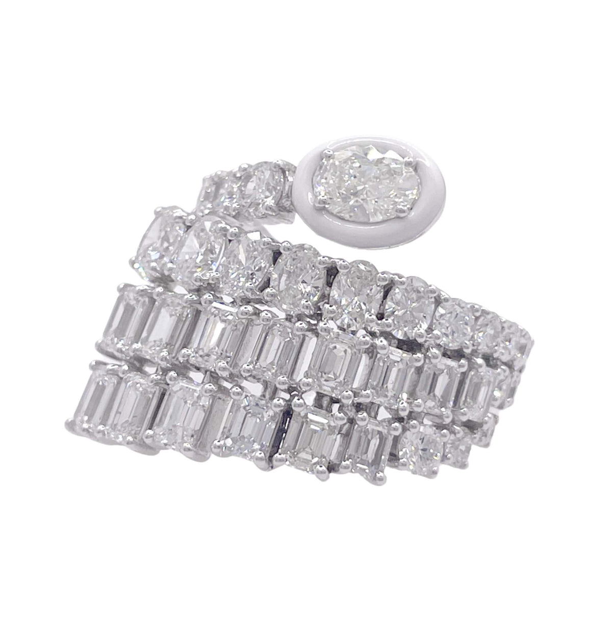 JAY FEDER 18K WHITE GOLD DIAMOND WHITE ENAMEL WRAP RING