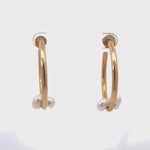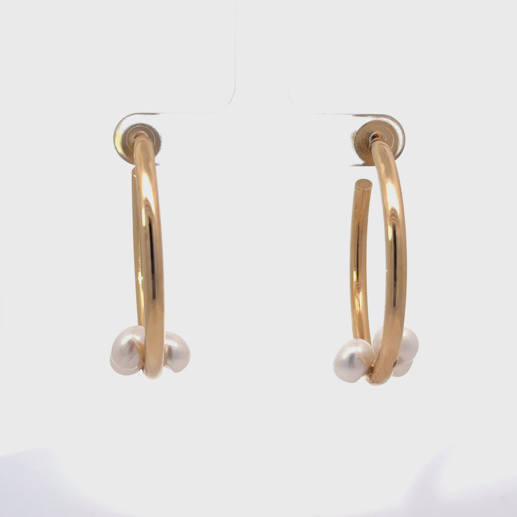 These 14k yellow gold hoop earrings offer a refined take on a timeless silhouette. Crafted in polished yellow gold, each hoop features three luminous pearls delicately positioned along the lower curve for a subtle yet distinctive accent.