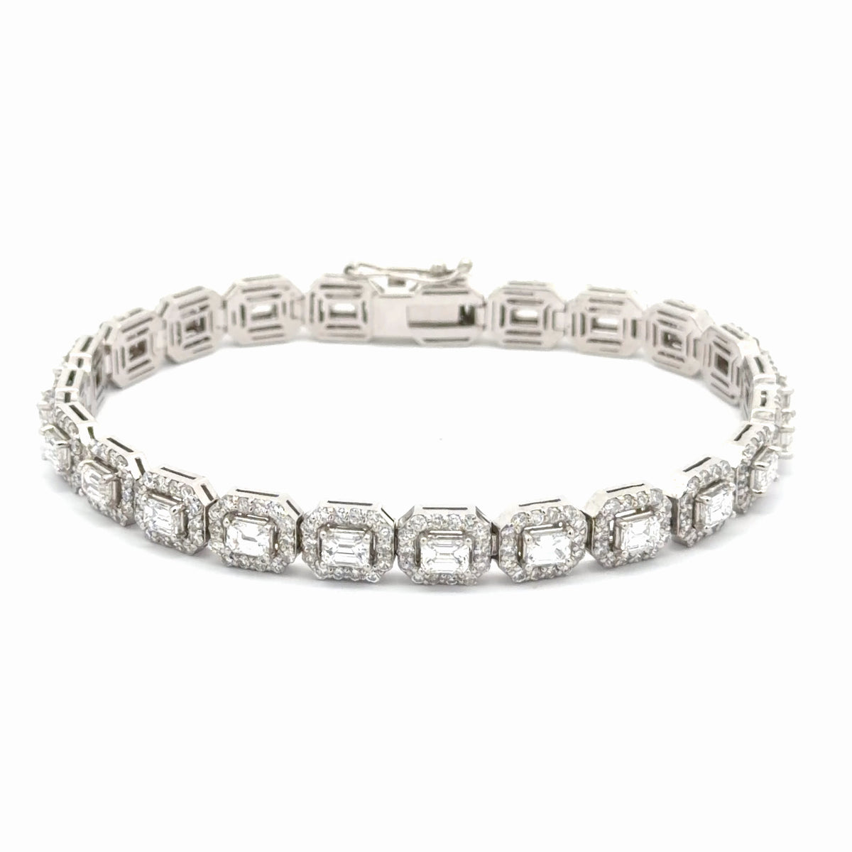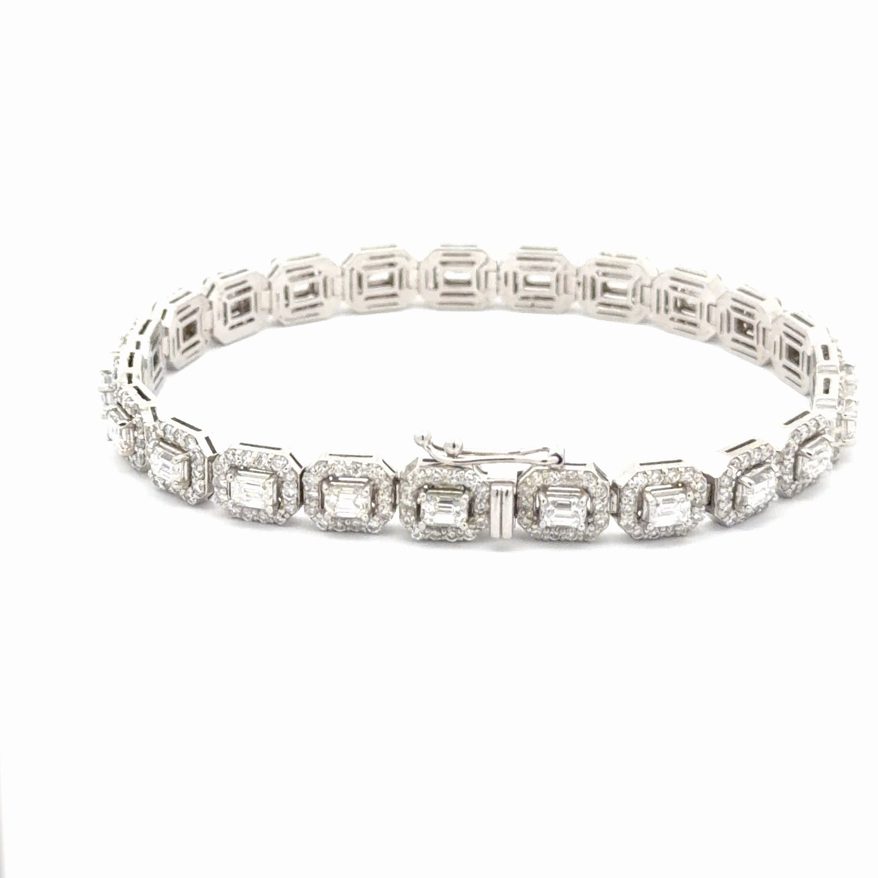 18K White Gold Cluster Tennis Bracelet – 7.82 CTW