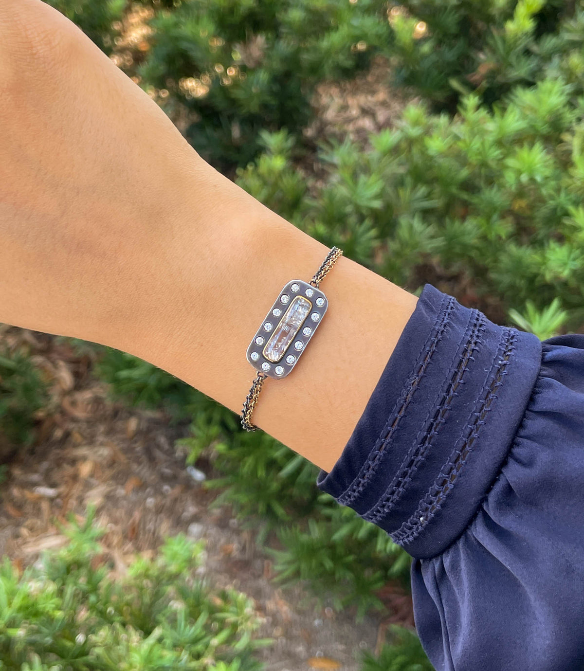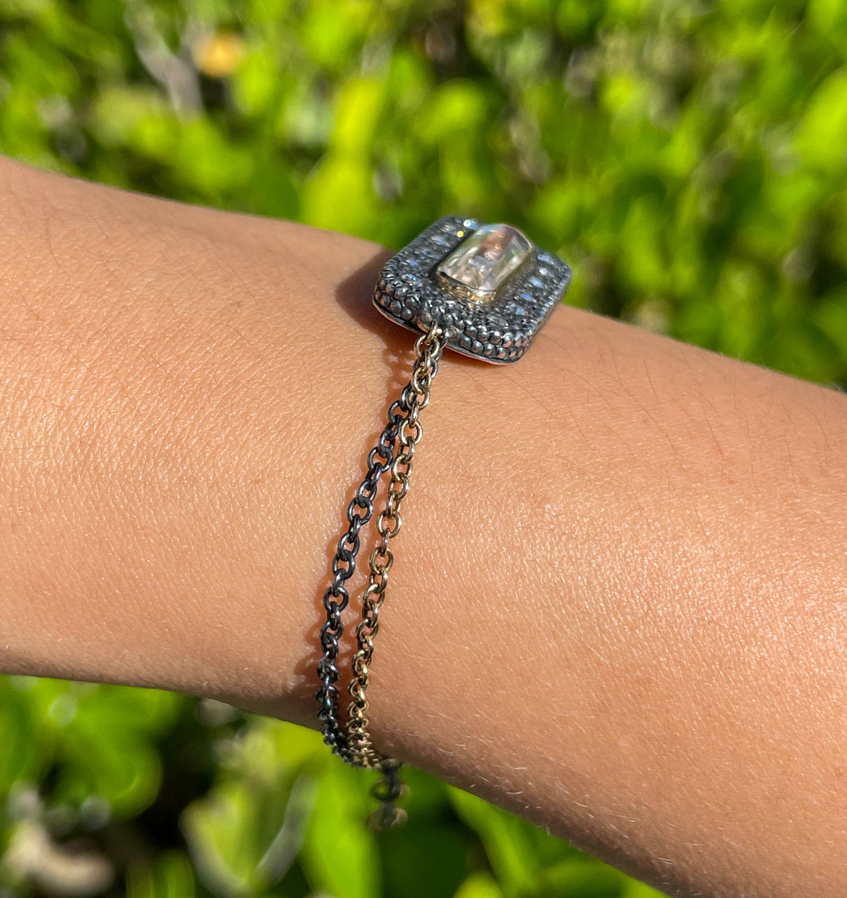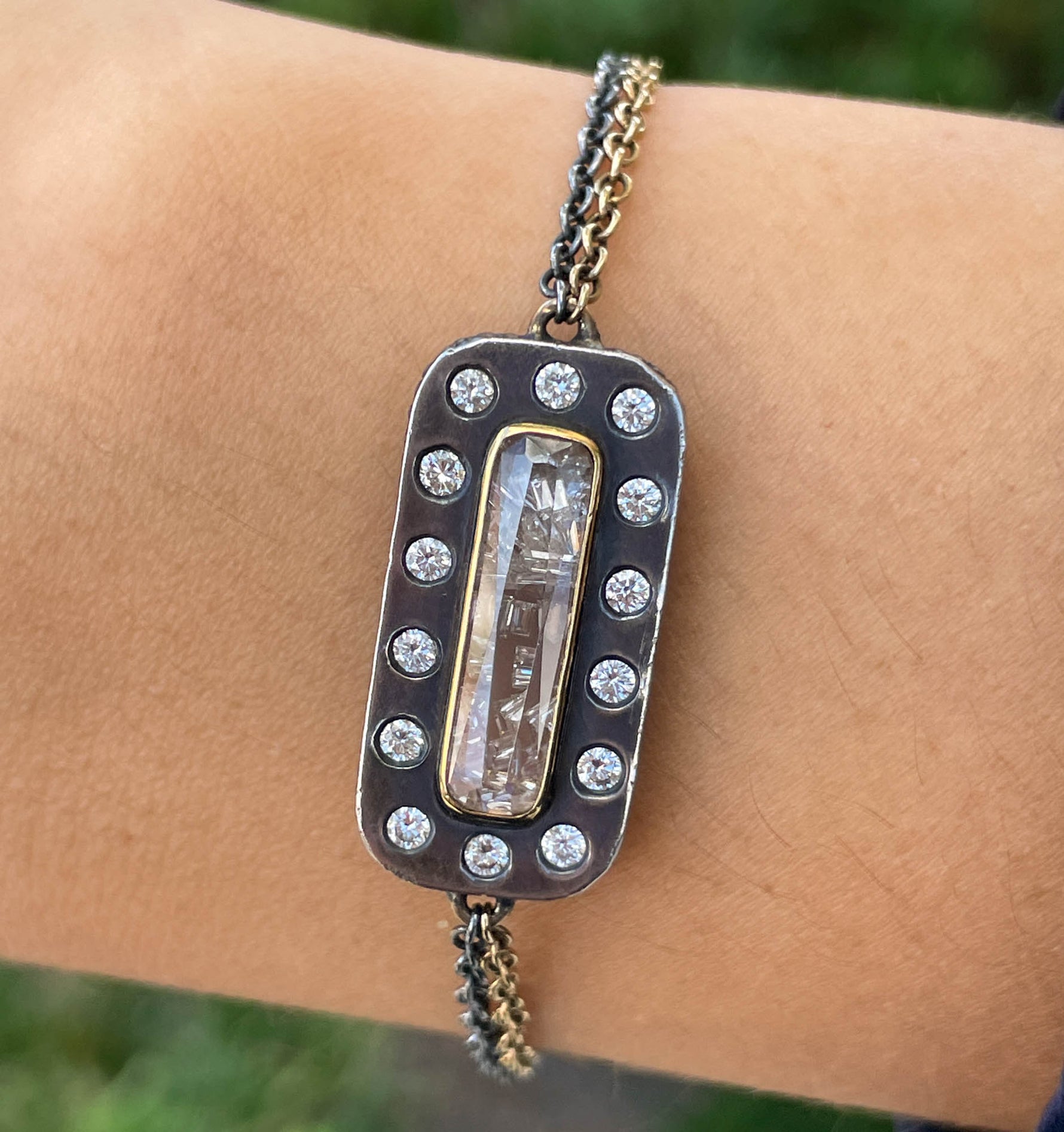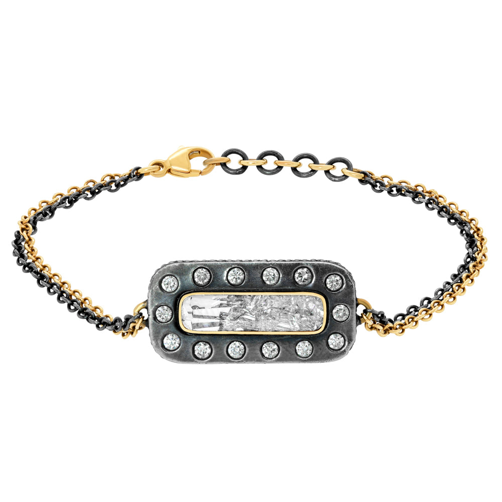 Moritz Glik 18K Yellow Gold Blackened Silver Diamond Rectangular Shaker Bracelet