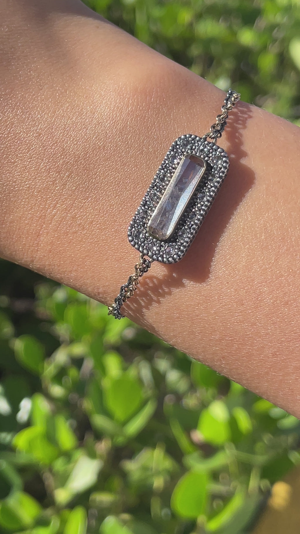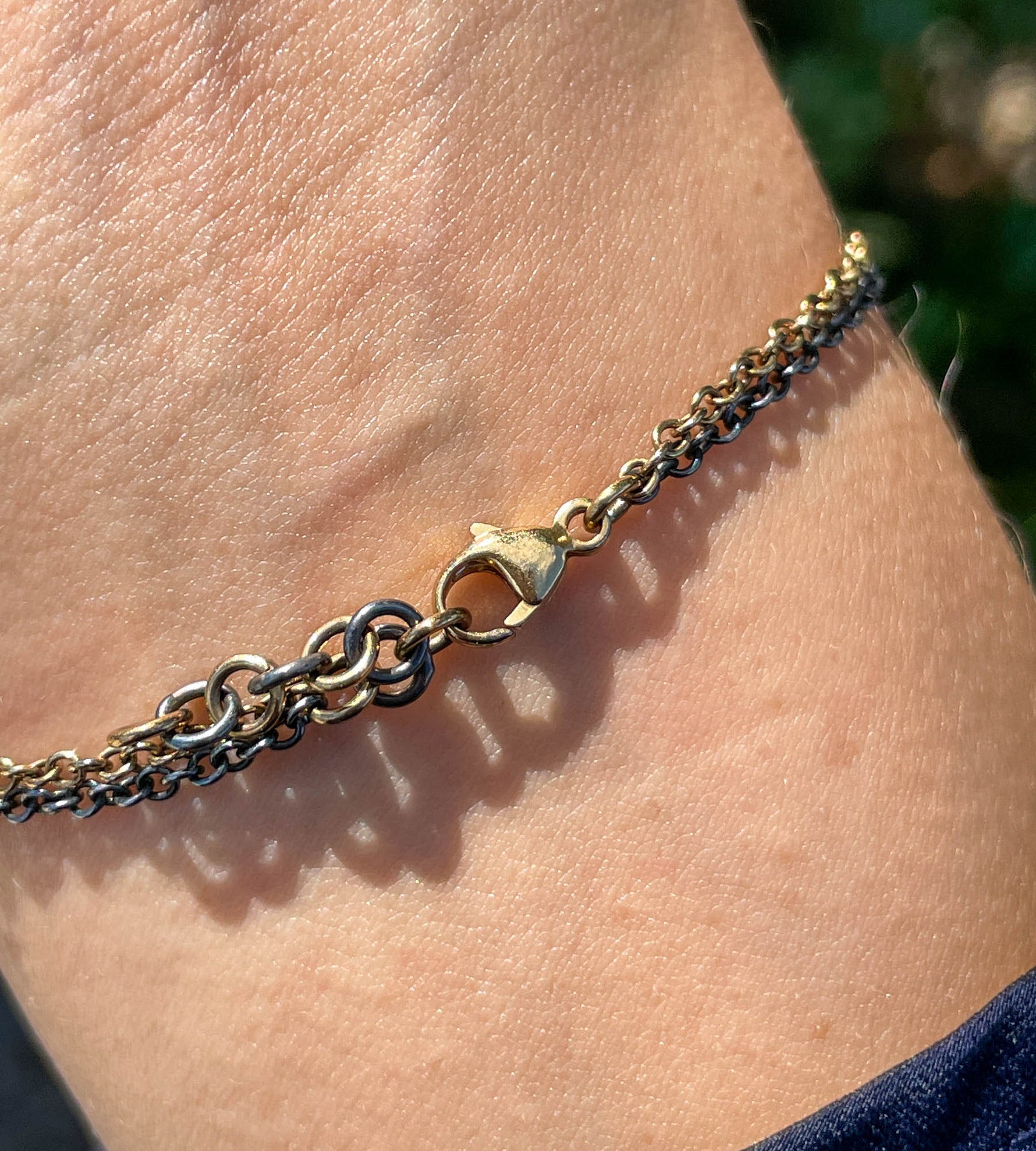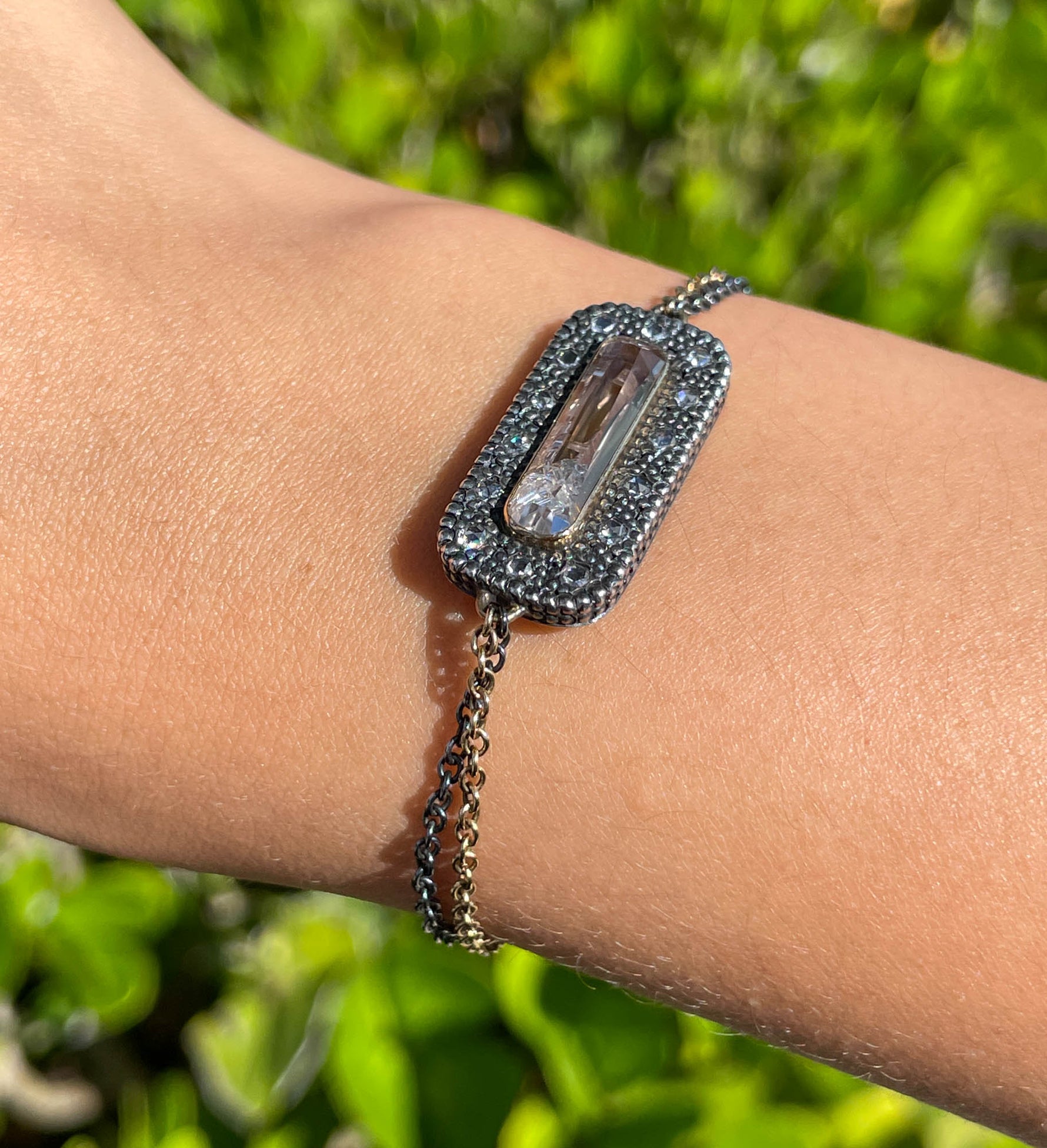 Moritz Glik 18K Yellow Gold Blackened Silver Diamond Rectangular Shaker Bracelet
