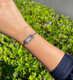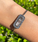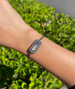The Bracelet is extendable and 6.25-7 inches long. The rectangle’s measurements are 12.38 NS-25.04 EW mm. The total weight is 9.7 grams.